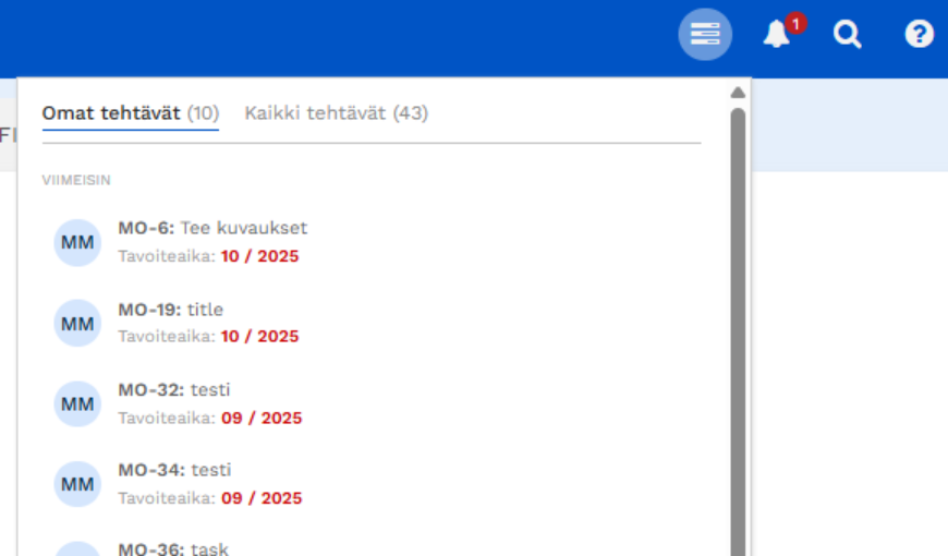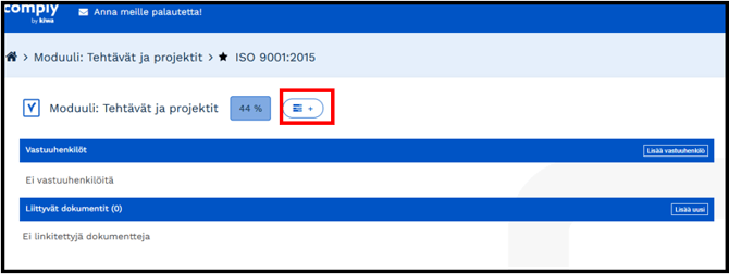 Uusi ominaisuus on mahdollisuus määrätä tehtäviä käyttäjille. Tehtäviä voi asettaa moduuli-, vaatimus- ja indikaattoritasolle sekä ISO/IEC 27001 osalta myös yksittäiselle kontrollille.