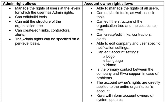 A user can be the account owner even if the user does not have Admin rights. Account Owner rights are more extensive and the differences between the rights of an Admin and Account Owner are described below.