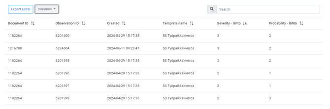 You can further examine the observations related to the selected risk(s) by using the columns in the list. By enabling the relevant columns, you can view key details and easily compare the observations. To view the content of an individual observation, click it—Impact will open the task view for that specific observation, showing its details and any corrective actions related to the observation and the associated risk.
