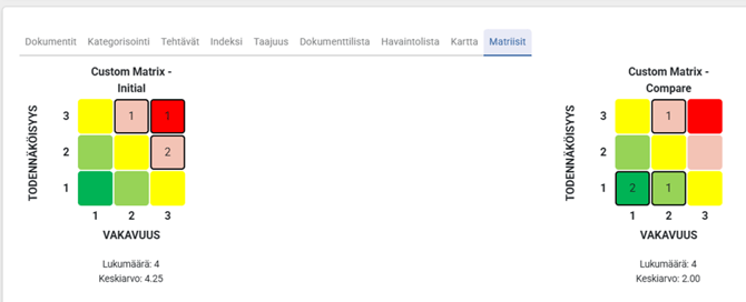 Below each matrix, you can see the number of risks included in that matrix and their average risk level. This allows an easier comparison between initial and residual risk levels.