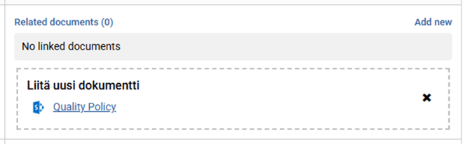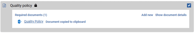 Copying a document link is started from the icon next to the link, which, when clicked, copies the document link to the operating system’s general clipboard to be used in e.g. browser's address bar, and now also to be pasted into another link field within Comply.