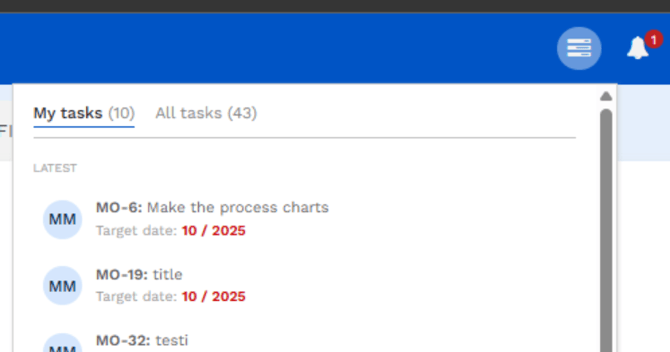 - In the overview for tasks now visible own tasks and all tasks