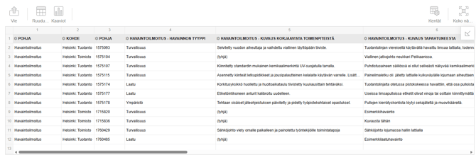 - Kaikki tiedot latautuvat taulukkoon ja voit esimerkiksi viedä ne Exceliin käsiteltäväksi VIE painikkeen avulla.