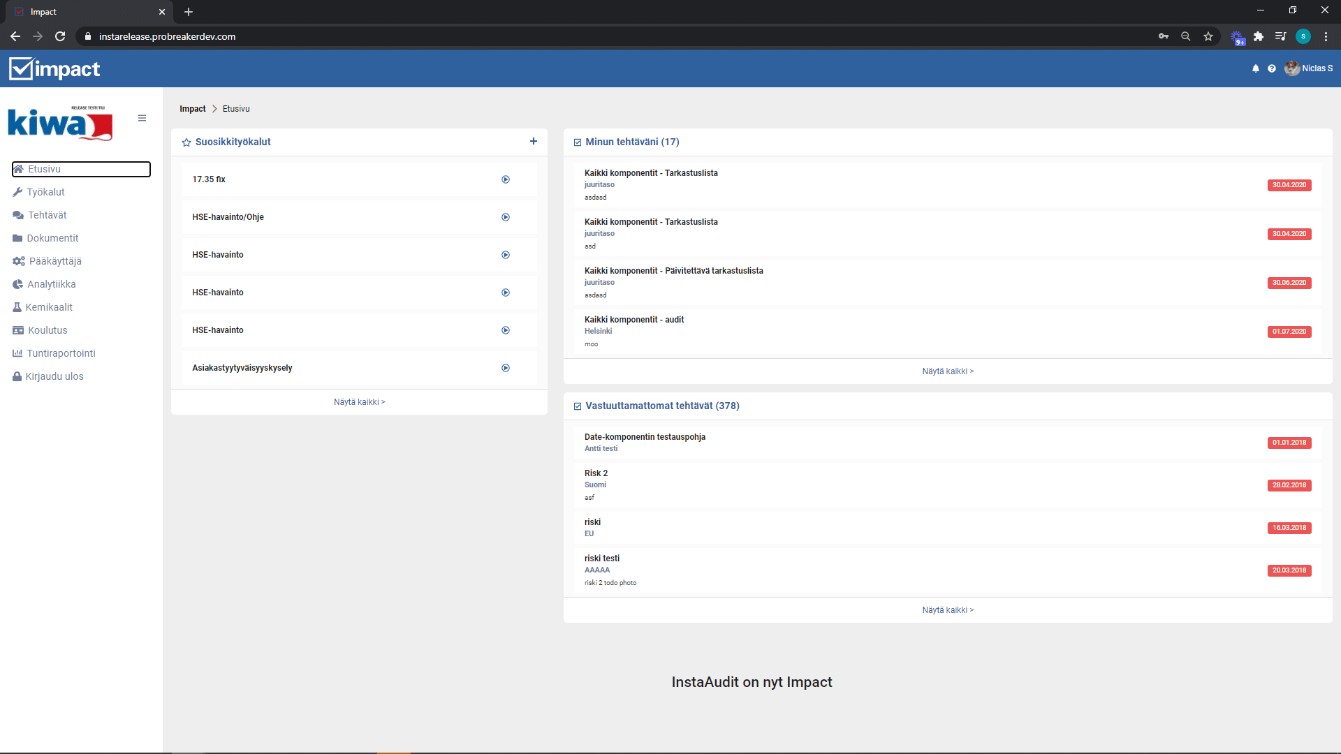 Työkalu täytetään valmiiksi, oletusvastuuhenkilö saa siitä tehtävän automaattisesti.