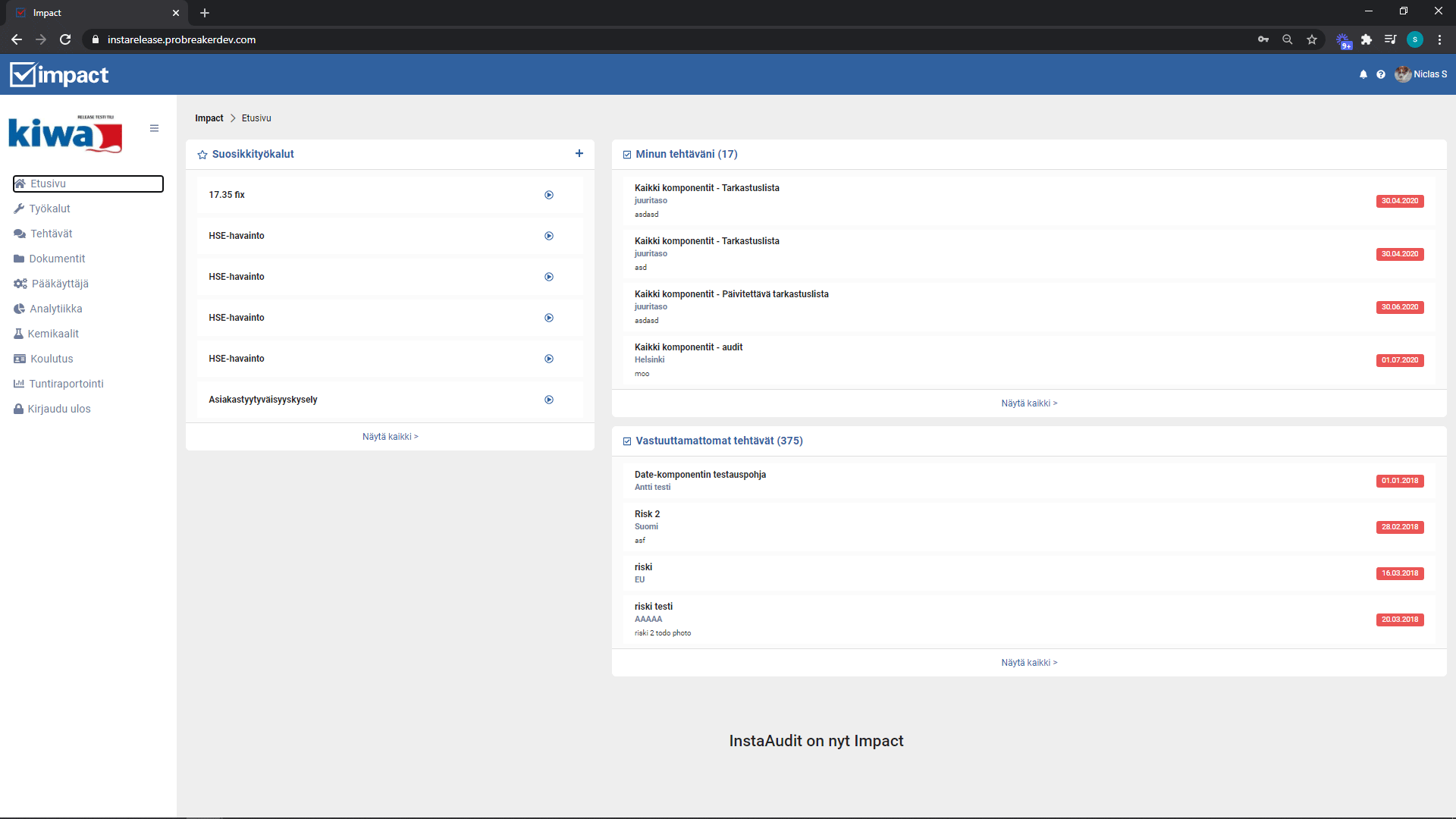 Plus (+) painikkeen takaa muodostuu havainnosta tehtävä. Vastuuhenkilö tieto tulee automaattisesti näkymään listan täyttövaiheessa.