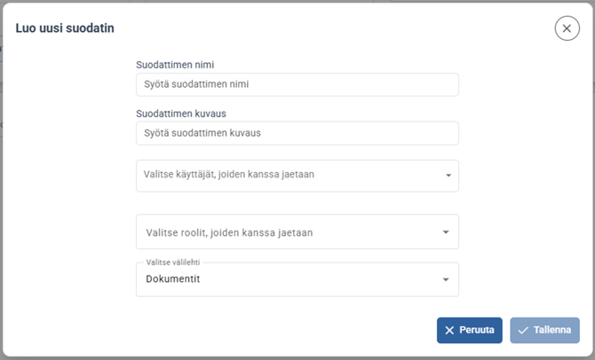 Suodattimien tallentaminen